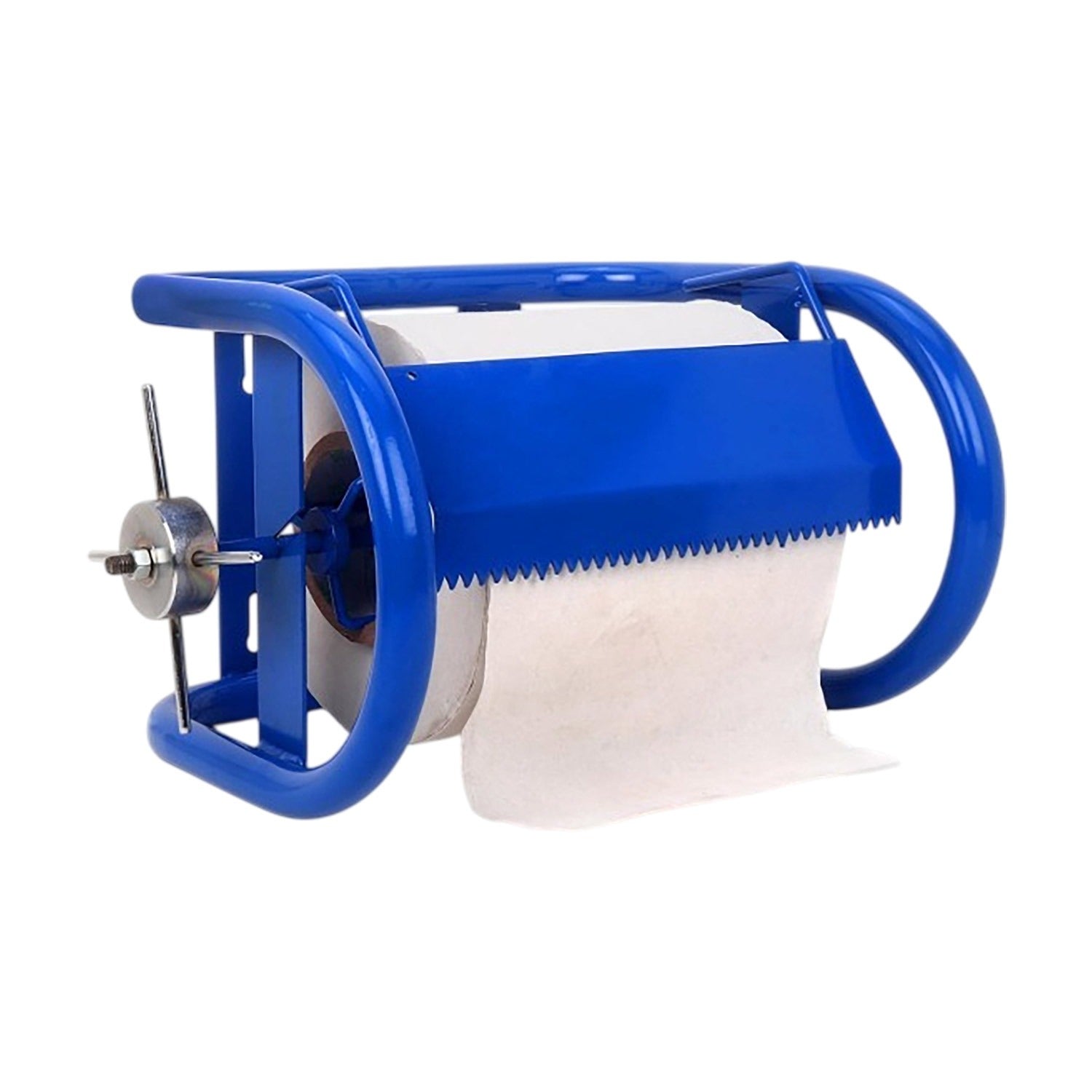 > Heavy-duty industrial paper roll dispenser designed for smooth dispensing and easy cutting of large rolls.