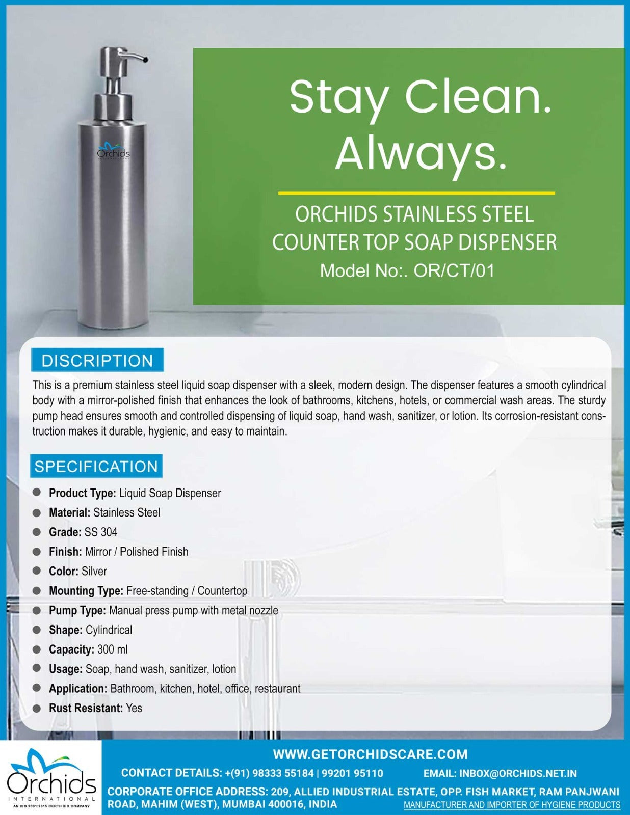 Orchids Stainless Steel Counter Top Soap Dispenser (OR/CT/01)